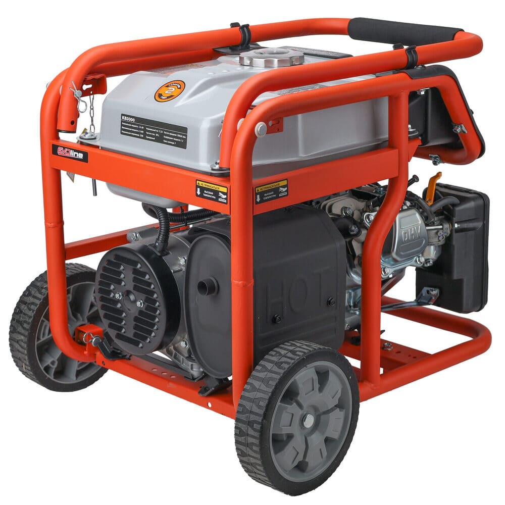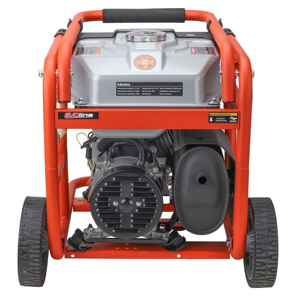 Электрогенератор EVOline KB 3300 – бензиновый однофазный (1 фазный) генератор с максимальной мощностью 3 кВА. Силовым агрегатом данной модели является надежный четырехтактный двигатель ZONGSHEN GB210. Рама выполнена из высококачественной стали, которая служит не только для защиты двигателя, но и для удобной транспортировки электростанции. Объем топливного бака составляет 15 литров, что дает примерно 10 часов непрерывной работы в зависимости от нагрузки. Уровень шума при работе генератора составляет 74,5 дБ. Данная модель идеально подходит как для дома, так и для малого бизнеса. Оснащена транспортировочным комплектом с колесами, счетчиком мото-часов и 2-мя розетками, имеет размер (590 х 440 х 500 мм) и вес (48 кг). Гарантия составляет 2 года.