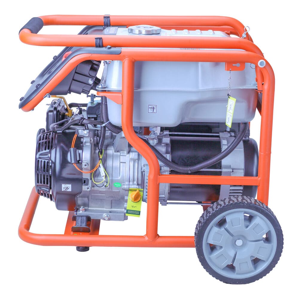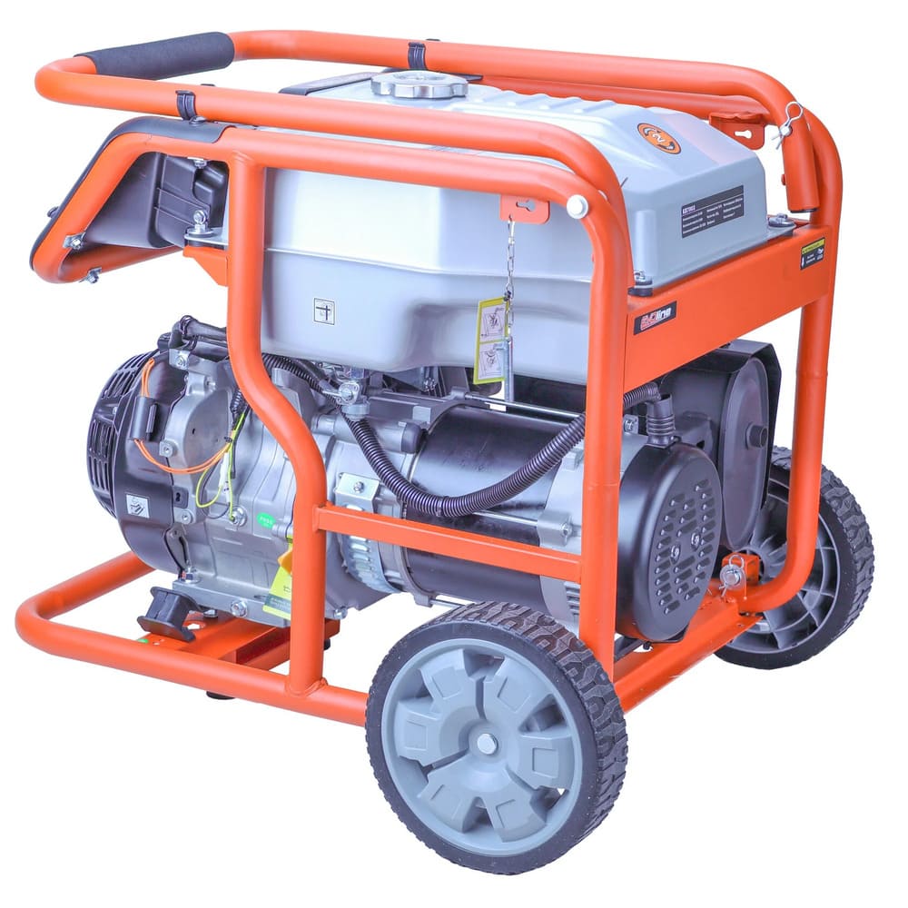Электрогенератор EVOline KB 7003 – бензиновый трехфазный генератор с максимальной мощностью 6,5 кВА. Силовым агрегатом данной модели является четырехтактный двигатель ZONGSHEN GB 420. Рама выполнена из высококачественной стали, которая служит не только для защиты двигателя, но и для удобной транспортировки электростанции. Объем топливного бака составляет 32 литра, что дает примерно 11 часов непрерывной работы в зависимости от нагрузки. Уровень шума при работе генератора составляет 76,5 дБ. Данная модель идеально подходит как для дома, так и для малого или среднего бизнеса. Оснащена транспортировочным комплектом с колесами, счетчиком мото-часов, электростартером и 2-мя розетками, имеет размер (700х530х590 мм) и вес (86 кг). Гарантия составляет 2 года.
