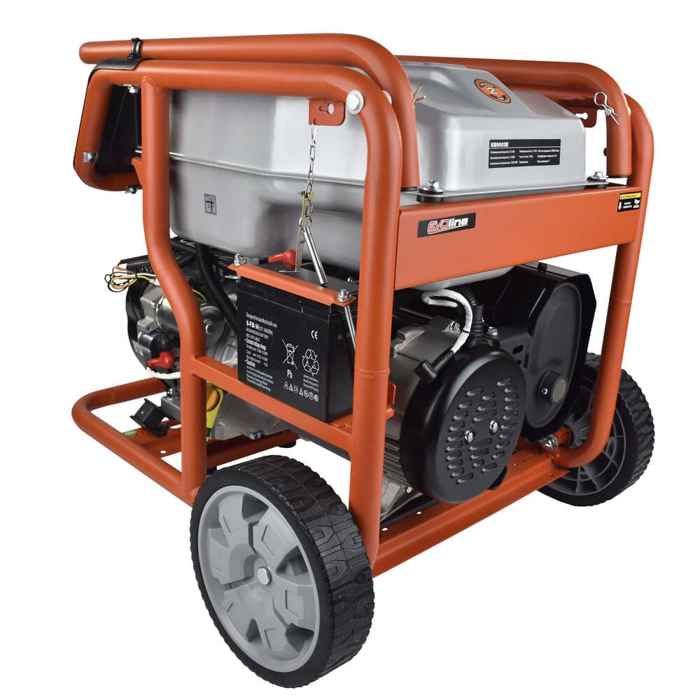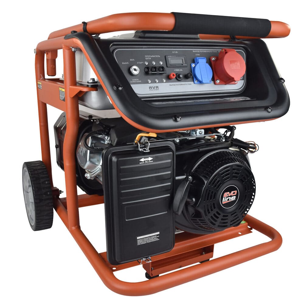 Электрогенератор EVOline KB 9003 E – бензиновый трехфазный (3 фазный) генератор с максимальной мощностью 8,5 кВА. Силовым агрегатом данной модели является четырехтактный двигатель ZONGSHEN GB 460 E. Генератор оснащен электрическим запуском. Рама выполнена из высококачественной стали, которая служит не только для защиты двигателя, но и для удобной транспортировки электростанции. Объем топливного бака составляет 32 литра, что дает примерно 11 часов непрерывной работы в зависимости от нагрузки. Уровень шума при работе генератора составляет 76,5 дБ. Данная модель идеально подходит как для дома, так и для малого или среднего бизнеса. Оснащена транспортировочным комплектом с колесами, счетчиком мото-часов, электростартером и 2-мя розетками, имеет размер (700х530х590 мм) и вес (100 кг). Гарантия составляет 2 года.