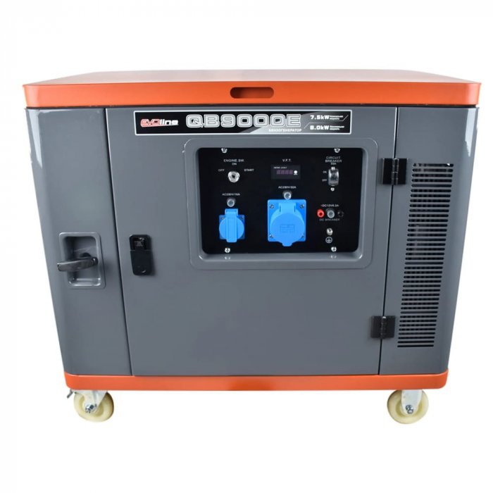 EVOline QB 9000 E —мобильная электростанция для коммунальных служб и крупных хозяйств. Его номинальной мощности 7.5 кВА достаточно для питания двух электрических снегоуборщиков (до 3.5 кВт каждый) или одного промышленного агрегата с электроприводом шнека. Встроенные колеса позволяют перевозить 147-кг генератор, а прочная рама защищает от ударов.