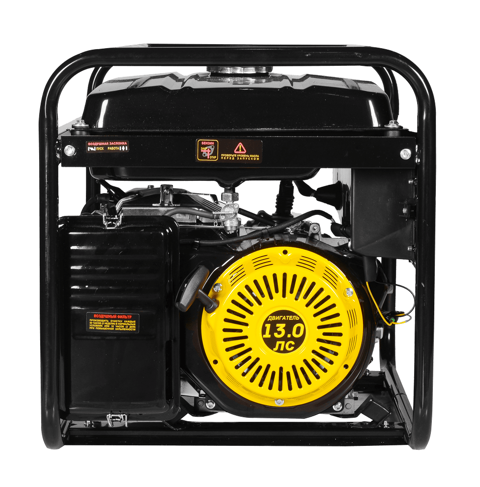 Надежный четырехтактный мощностью двигатель 13 л.с. работает на бензине, но при установке дополнительного оборудования генератор можно перевести на газ, что делает его более экономичным и универсальным. Генератор выдает чистое, стабильное напряжение без скачков, что безопасно для чувствительной техники. Большой топливный бак на 22 л обеспечивает продолжительную работу при низком расходе топлива.